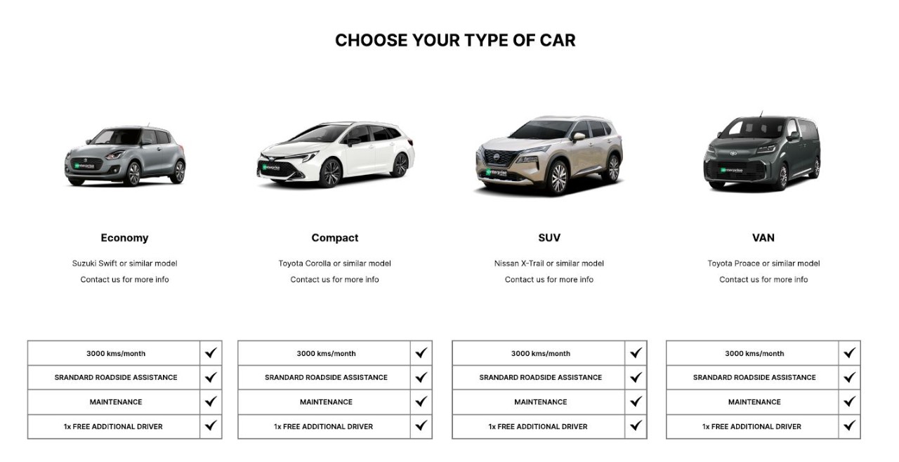 - Kosten enthalten Kraftstoff, Service, Versicherung, Reinigung, Wartung und Reparatur.